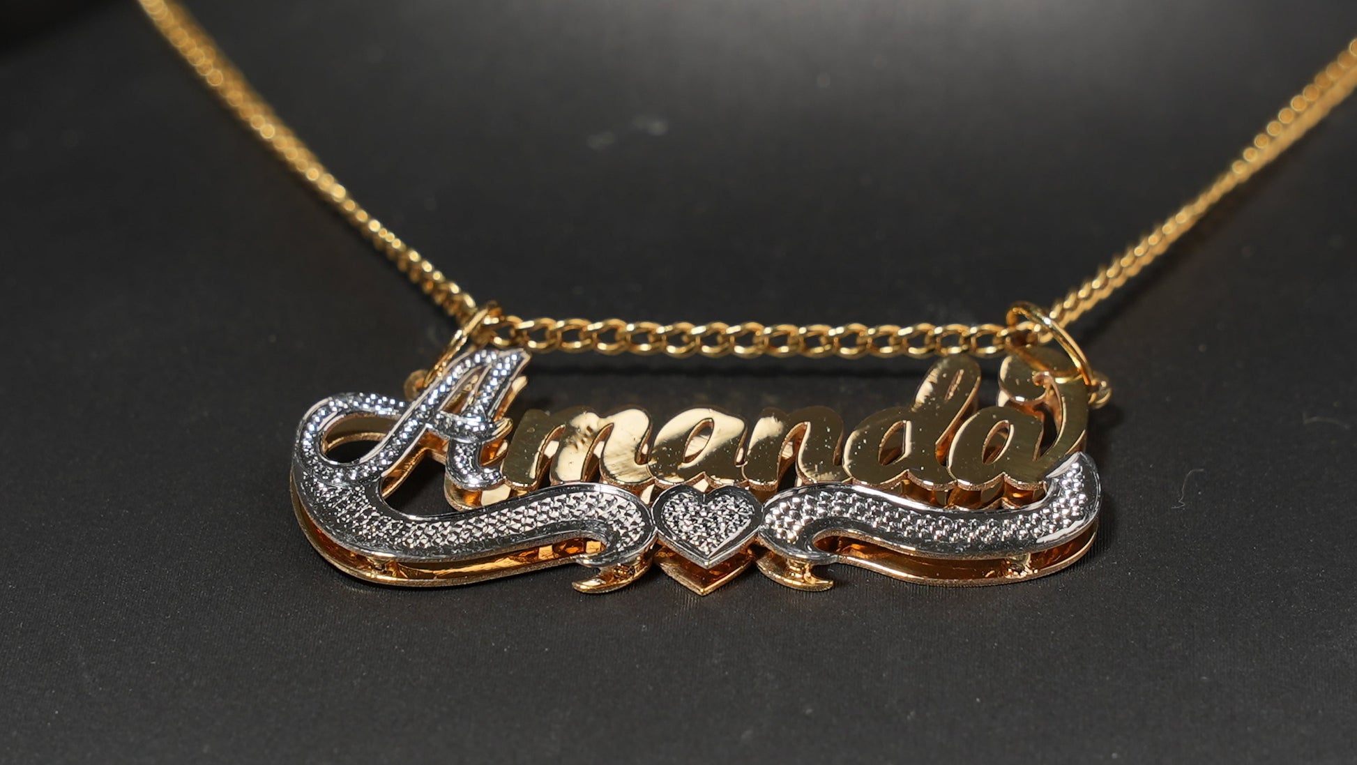 The Amanda Nameplate lets you add your name, nickname, or someone special's name in elegant fonts to match your vibe. Crafted from premium materials like Sterling Silver, Silver Gold Plated, 10K, and 14K Yellow or White Gold. With 20 years of experience, we've perfected the craft to create a piece that's perfect for layering with chains or wearing solo as your signature everyday accessory.