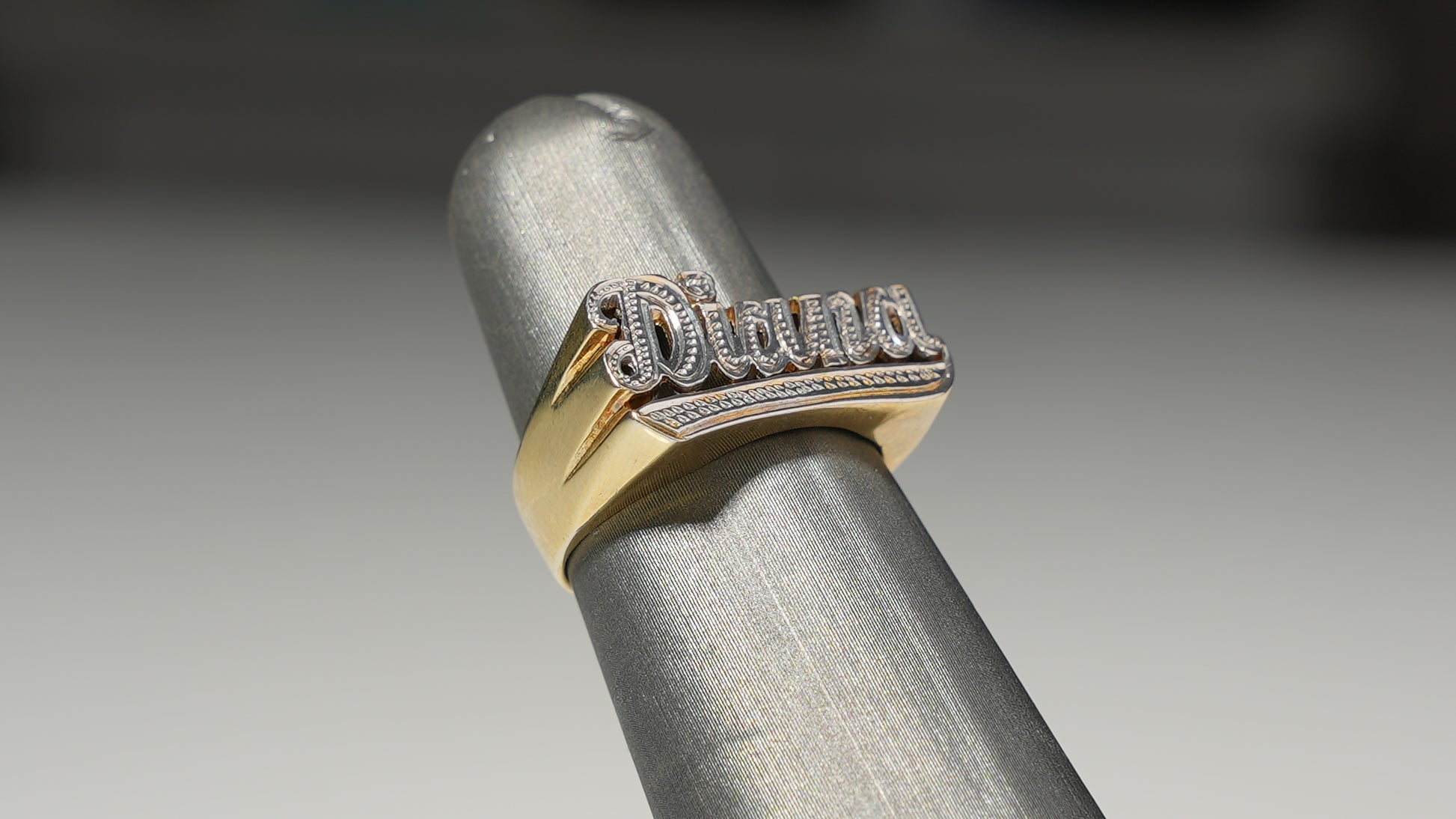 Whether you're adding to your jewelry collection or looking for that perfect personalized gift, this gold name ring combines traditional craftsmanship with eye-catching diamond cut details. It's more than jewelry—it's a piece of your identity you can wear with confidence.