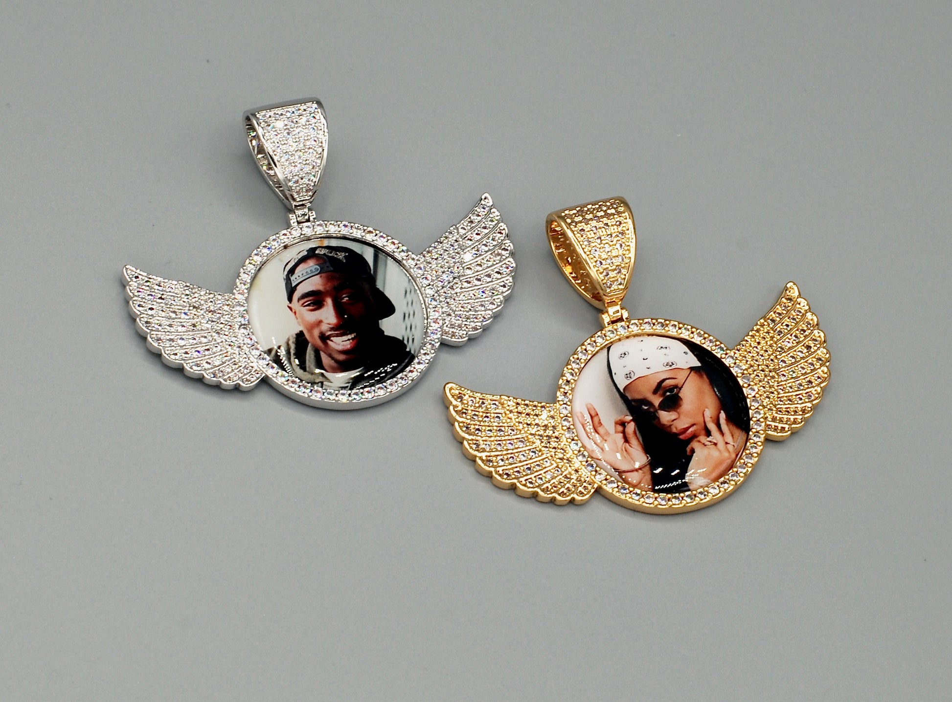 14k Gold or White Gold plated Angel Wings Custom 3D Photo Picture Charm Pendant 2.7 inch (68mm)