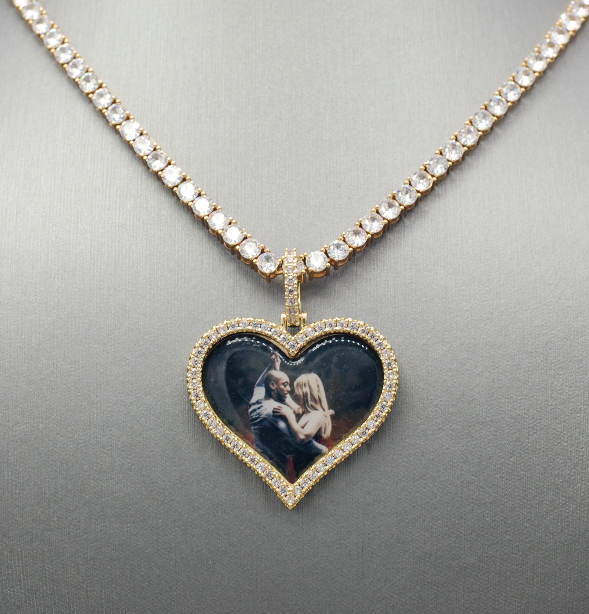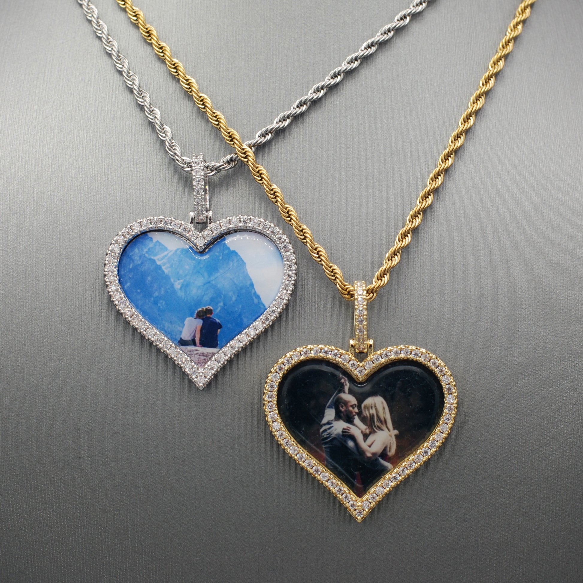 14k Gold or White Gold plated Heart shaped Custom 3D Photo Picture Charm Pendant 1.7 inch (44mm)