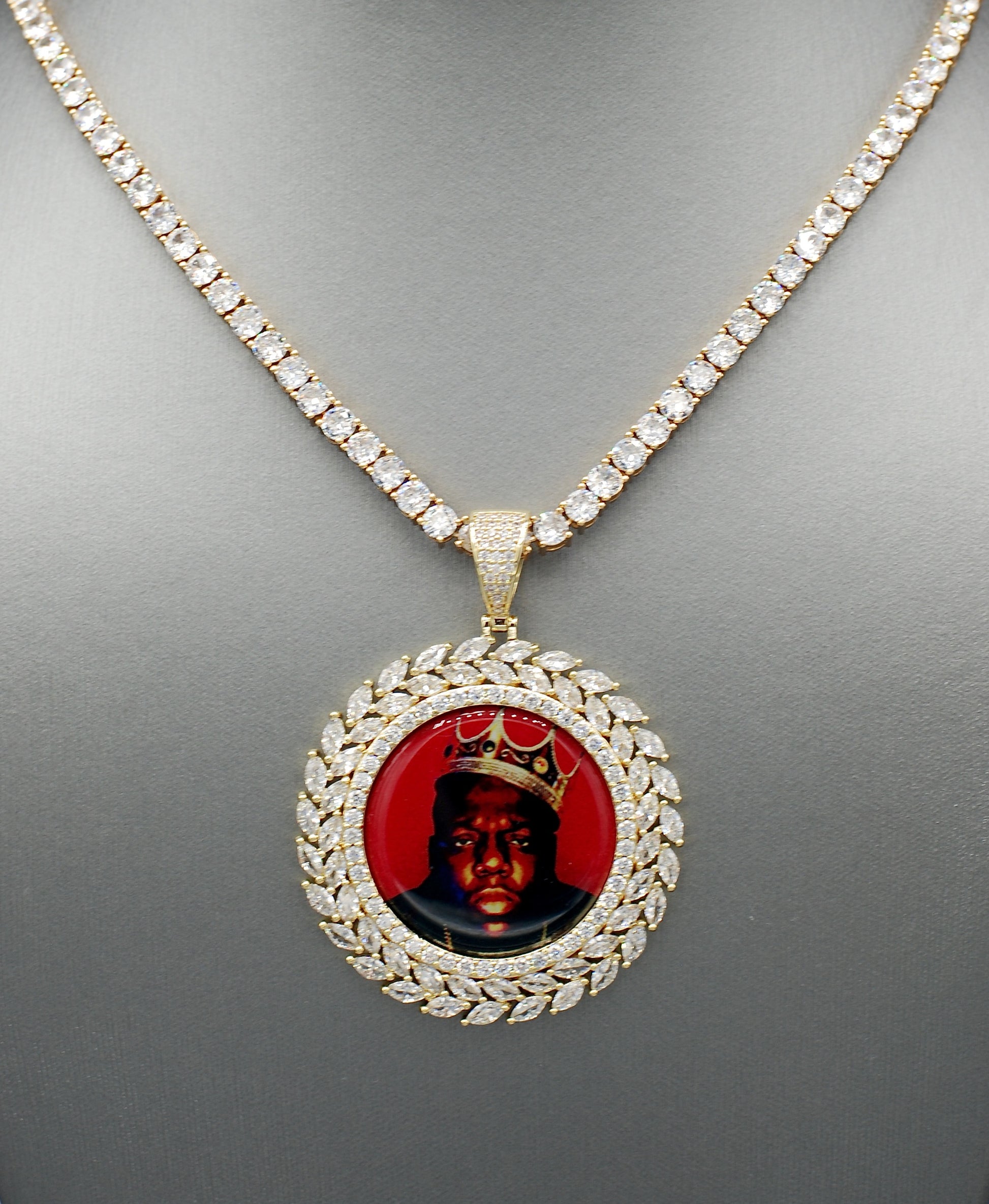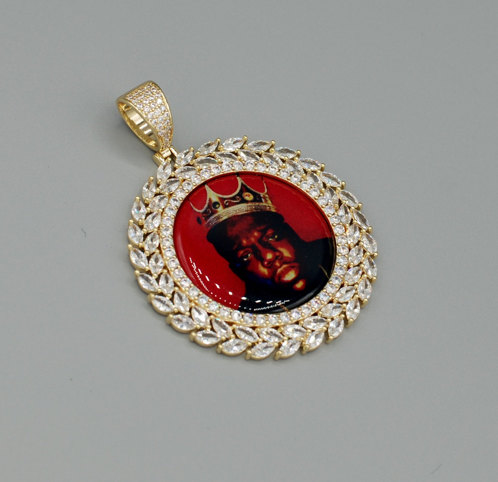 14k Gold or White Gold plated Round Wreath Custom 3D Photo Picture Charm Pendant 1.9 inch (47mm)
