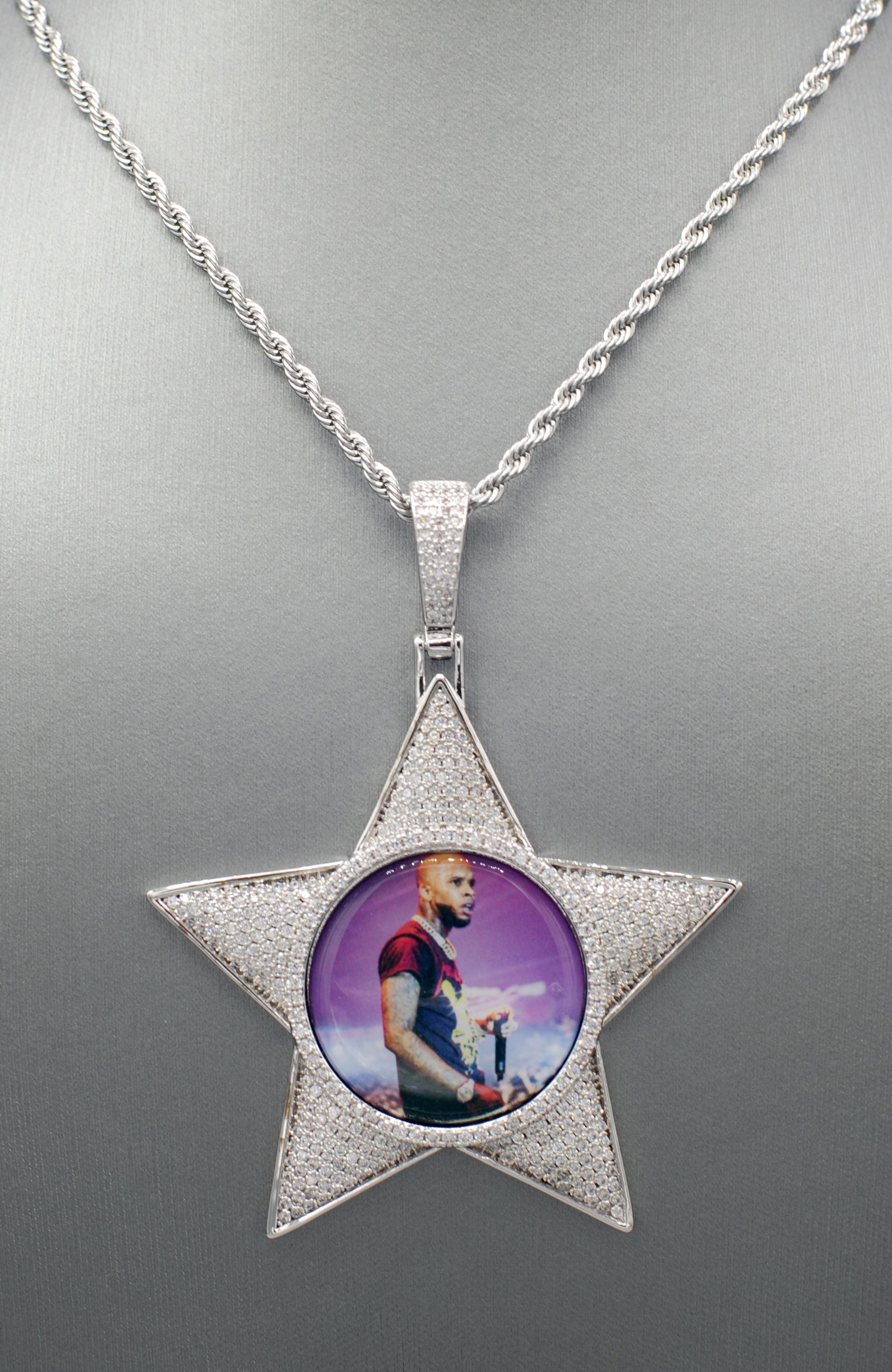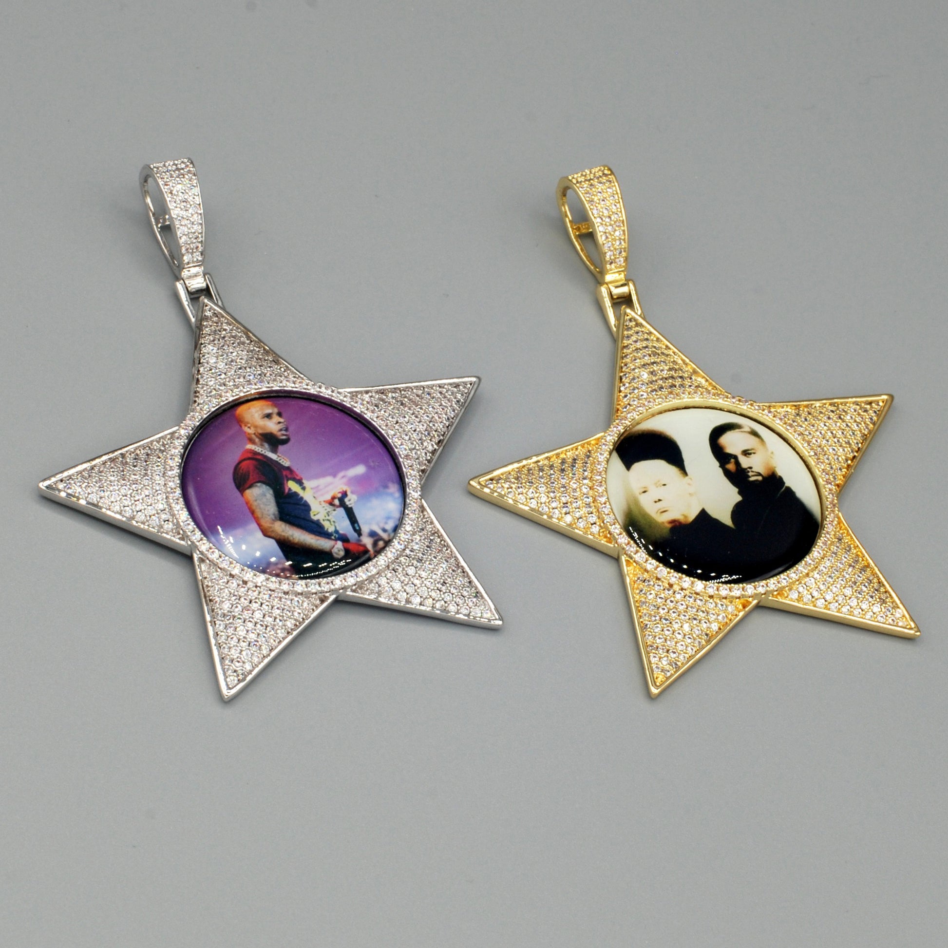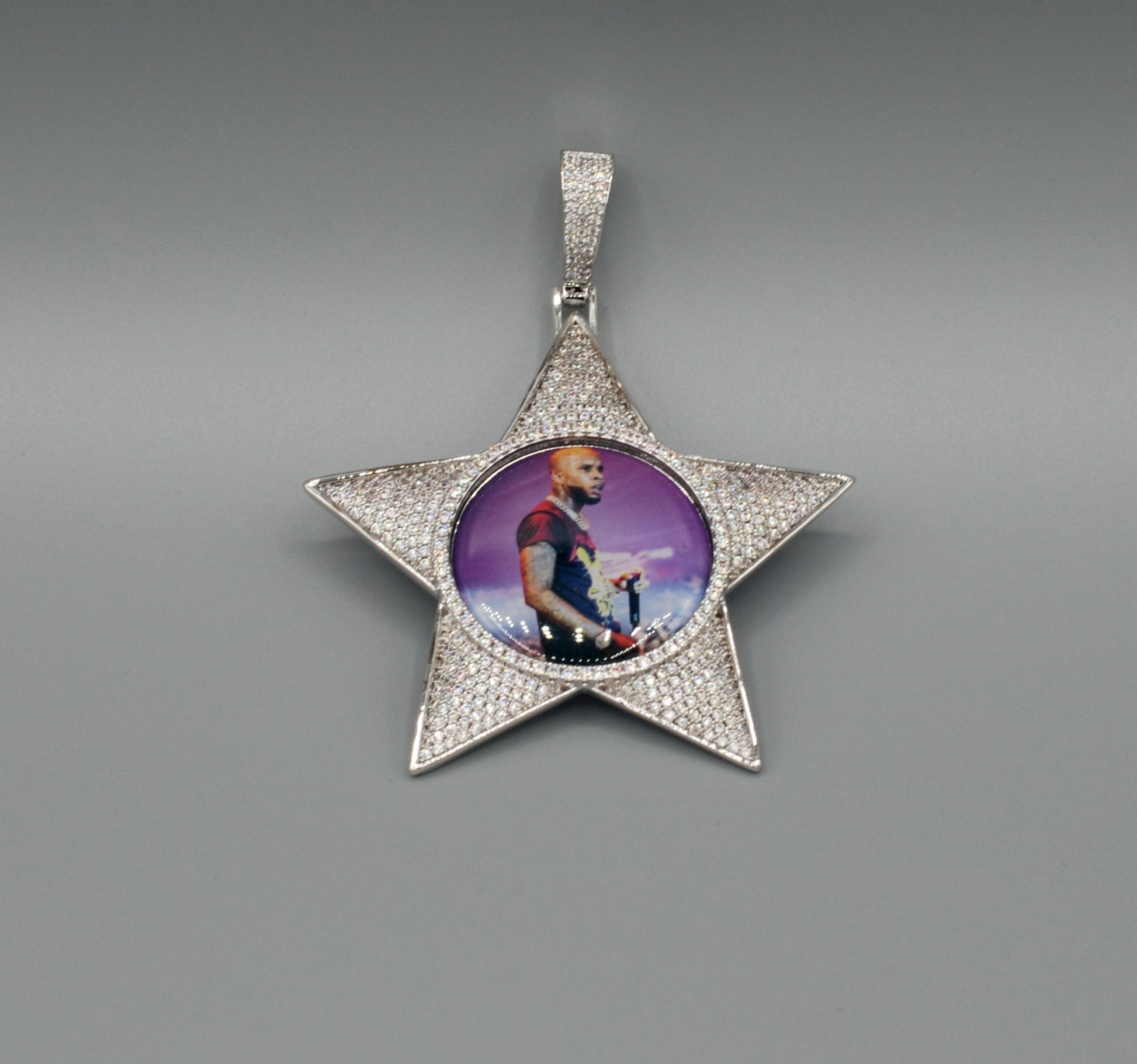 14k Gold or White Gold plated Star Custom 3D Photo Picture Charm Pendant 2.6 inch (65mm)